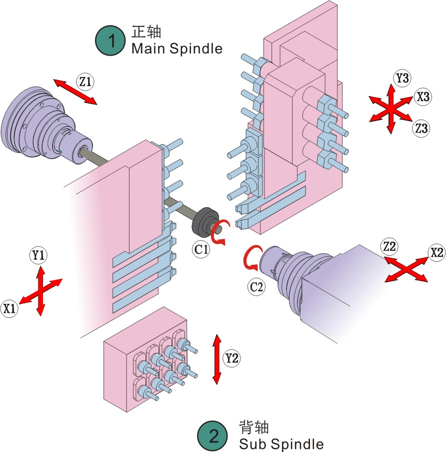 | 主軸外徑刀 | 主軸內(nèi)徑刀 | 主軸側(cè)面動力頭 | 副軸內(nèi)徑刀 | 副軸端面動力頭 |