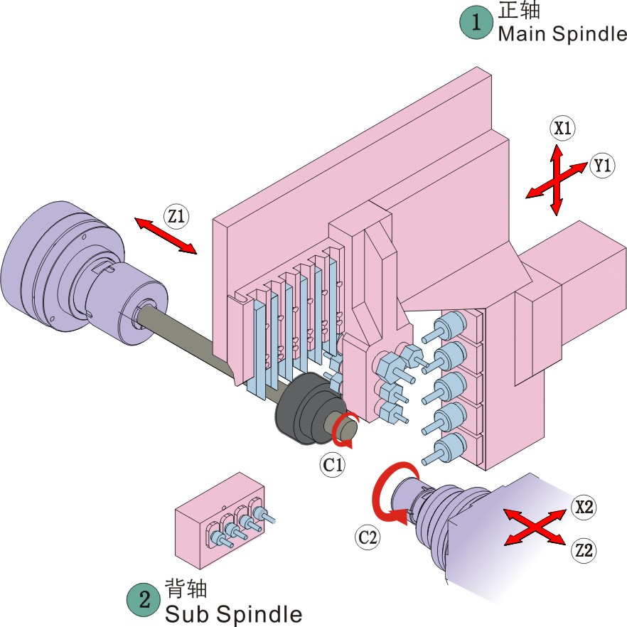 移動軸數(shù)5軸X 1 、Y 1 、Z 1 、X 2 、Z 2